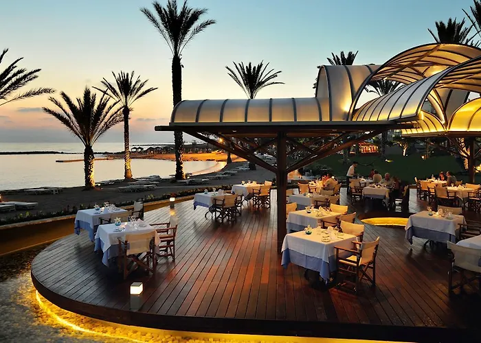 Featuring a private swimming pool, King Evelthon Beach Hotel And Resort Paphos is a 13-minute walk from Duck Pond Market. Nestled in the Chloraka district, the 5-star hotel offers an à la carte restaurant plus a Jacuzzi, sauna facilities and a massage chair.